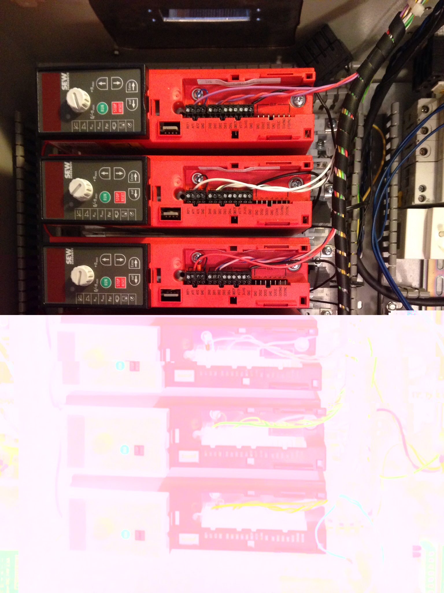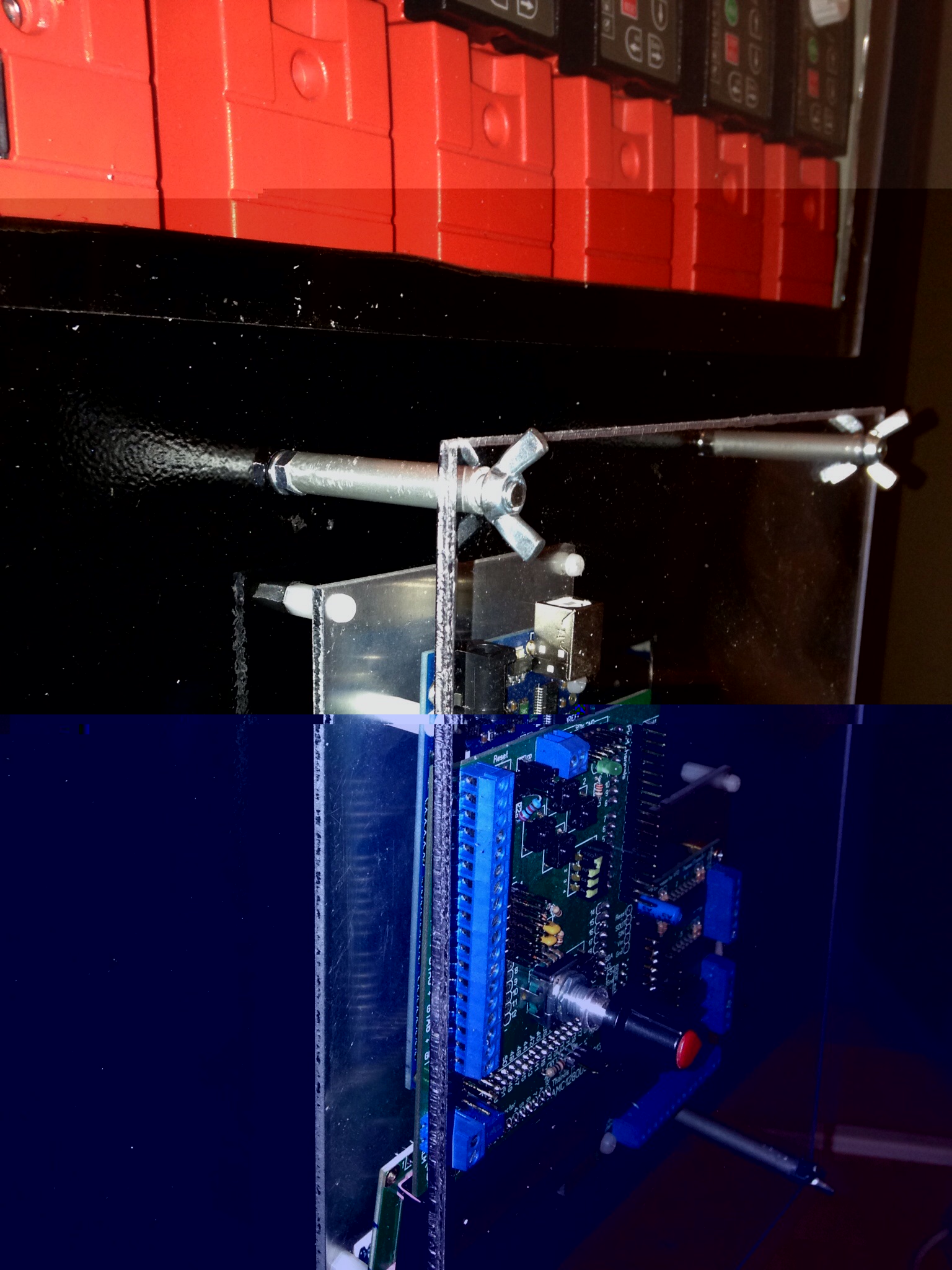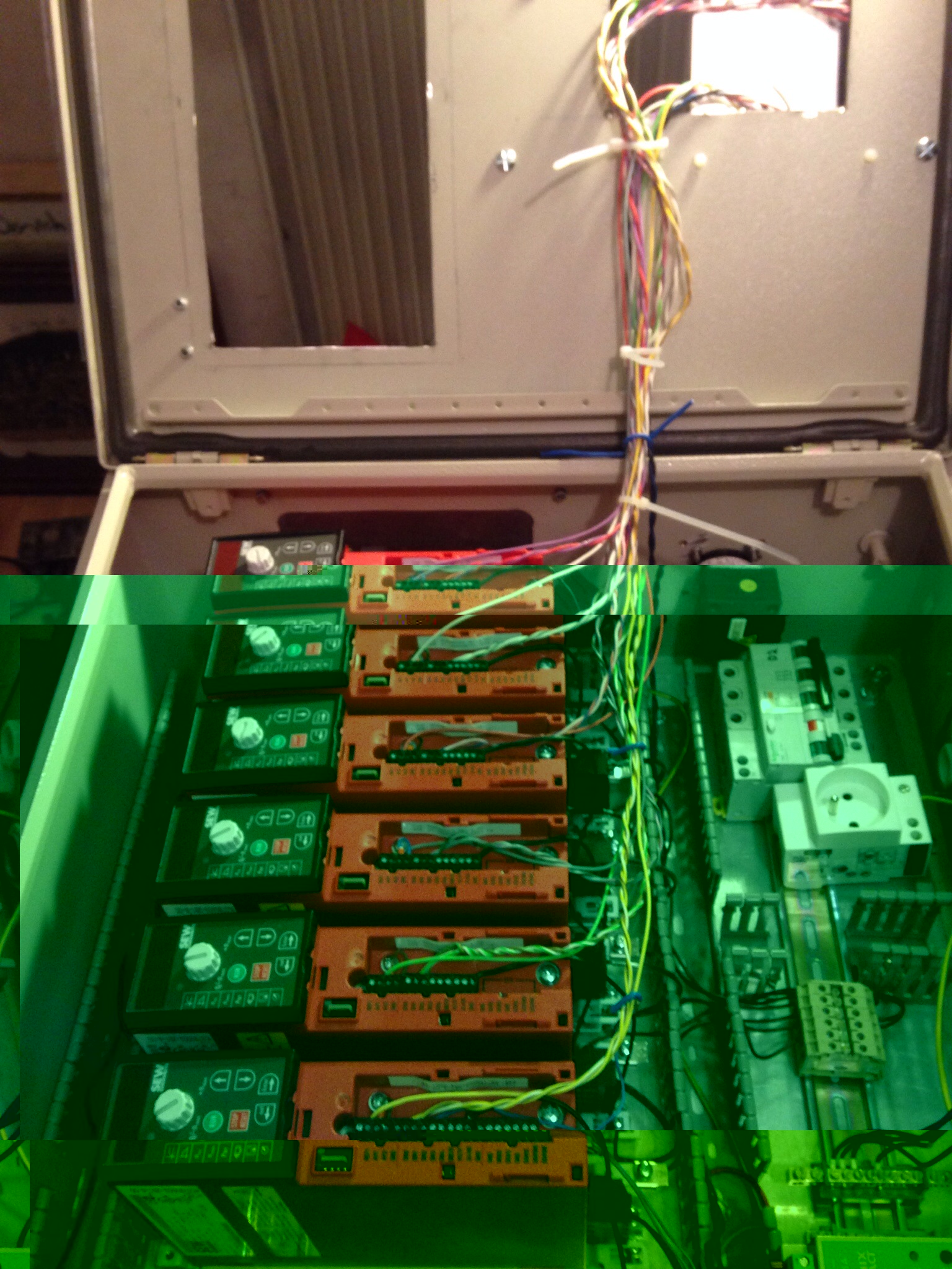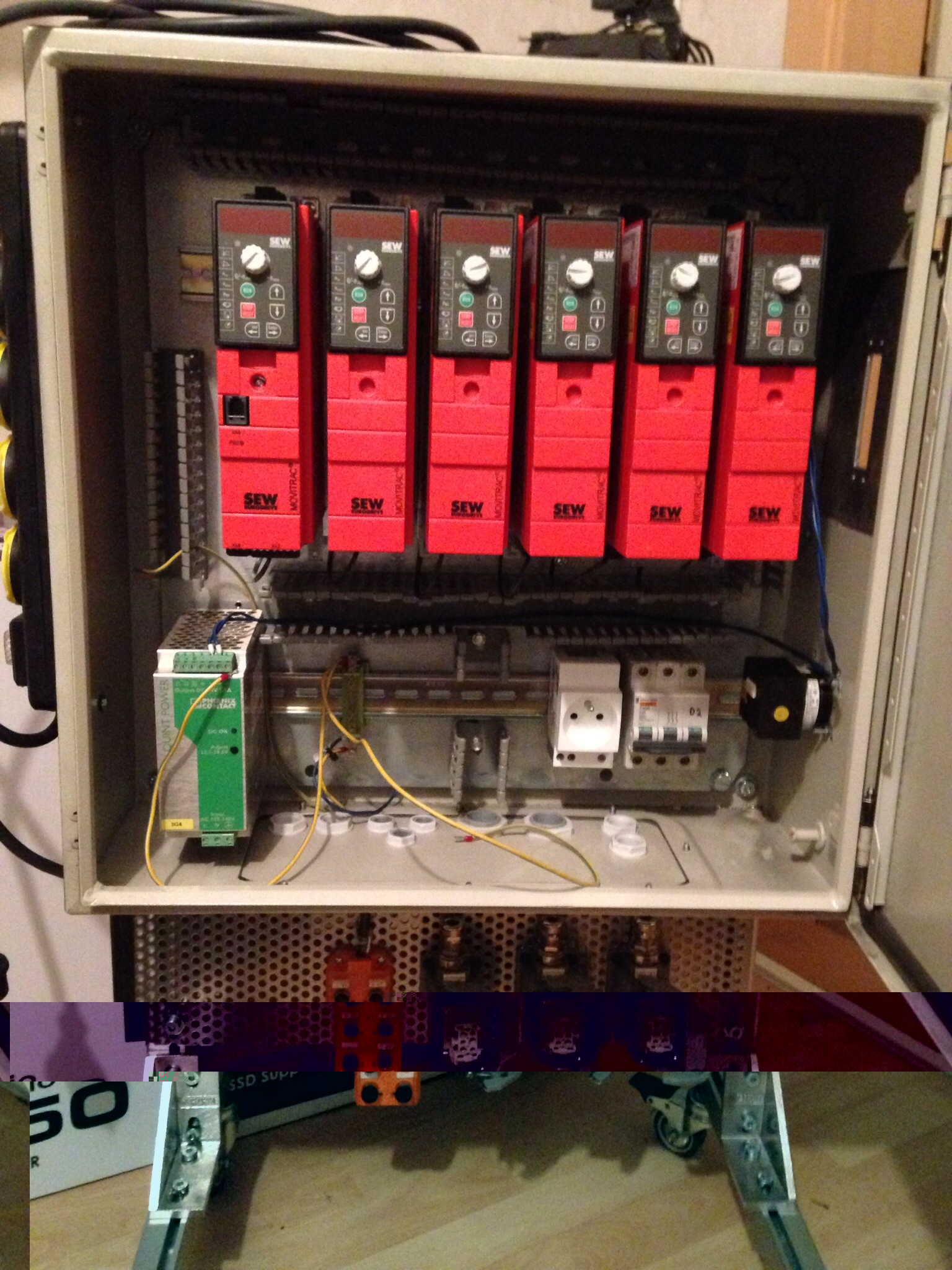 To put the inverter in the electrical box easily on the rail I used a frame on which I assembled the inverter and behind the braking resistor bw4 with 87,5 Ohms.This frame was provided with the inverters ( 20€ each).It's simple to use and the solution is very compact.