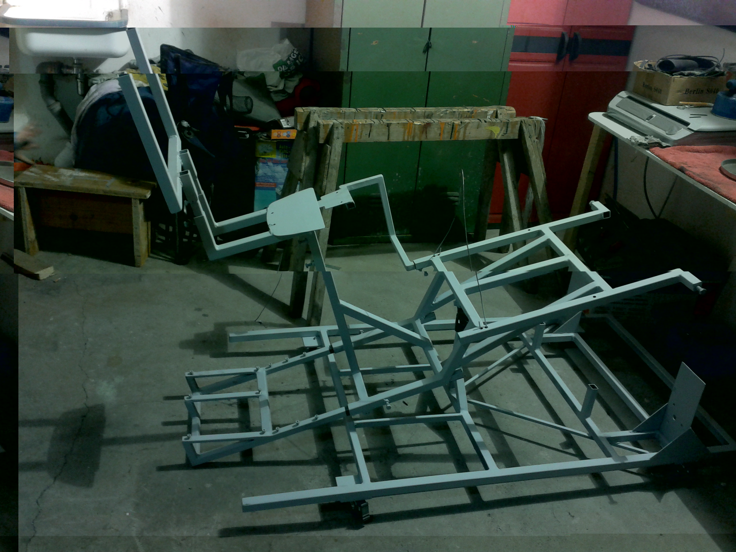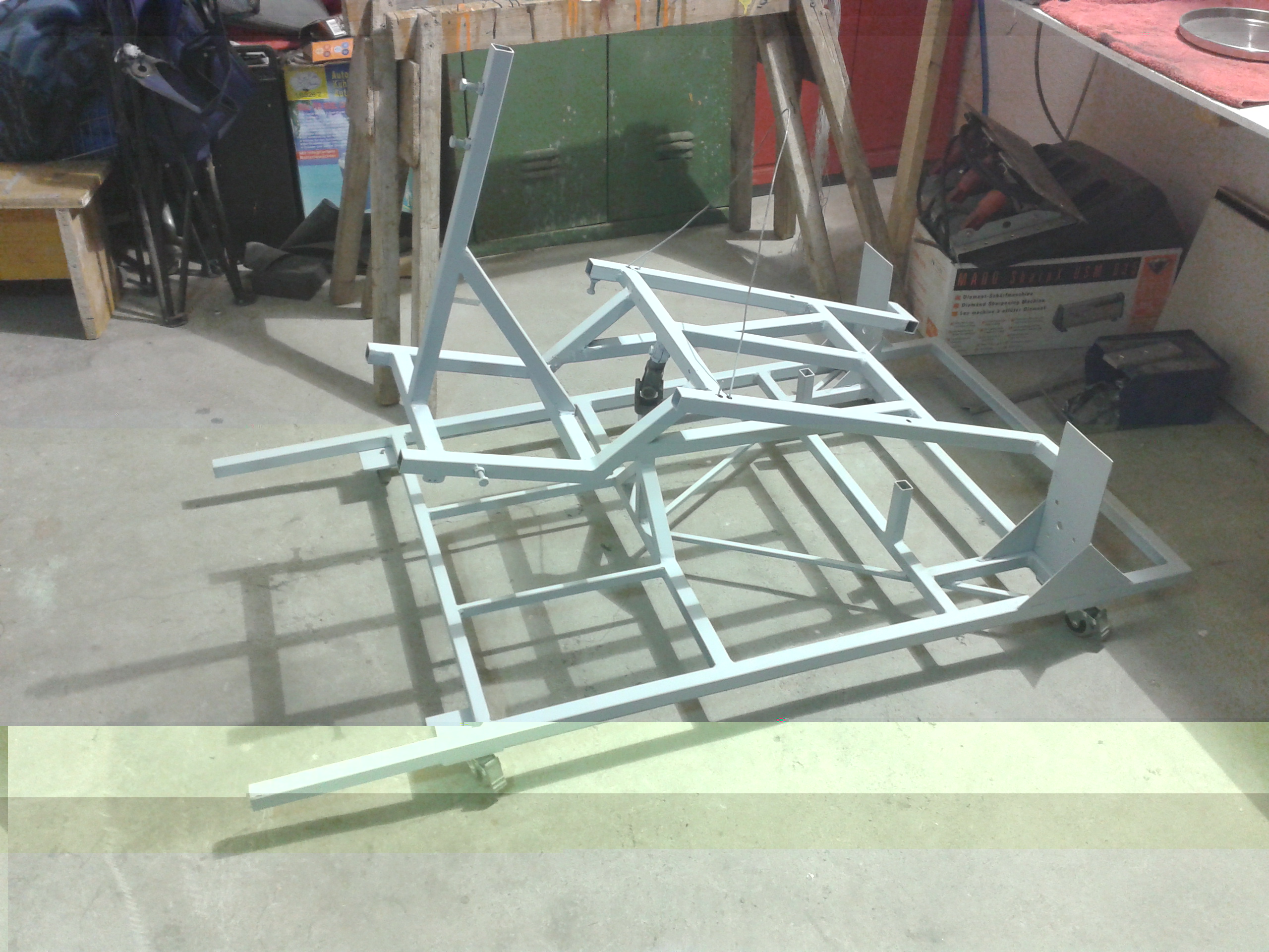 * clean weld and paint frame --> half way done, Primer is applied