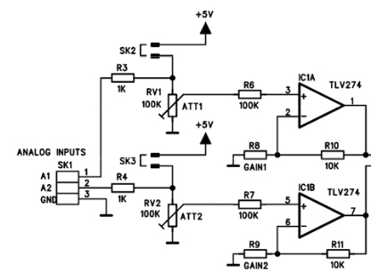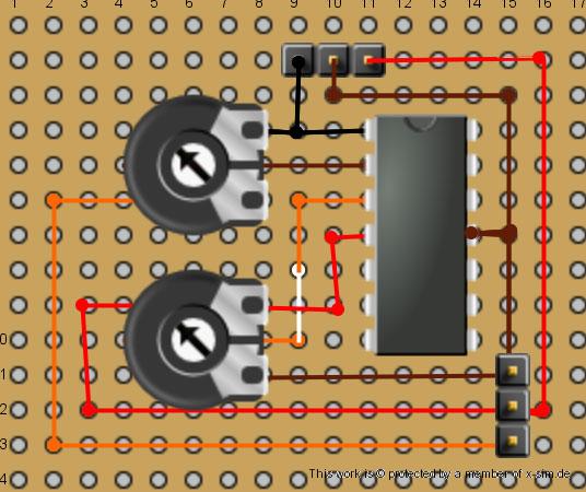 - two identical liniear trimmer pots with 1KOhm or any up to 10kOhm (smaller pots for thru hole breadboard mounting)