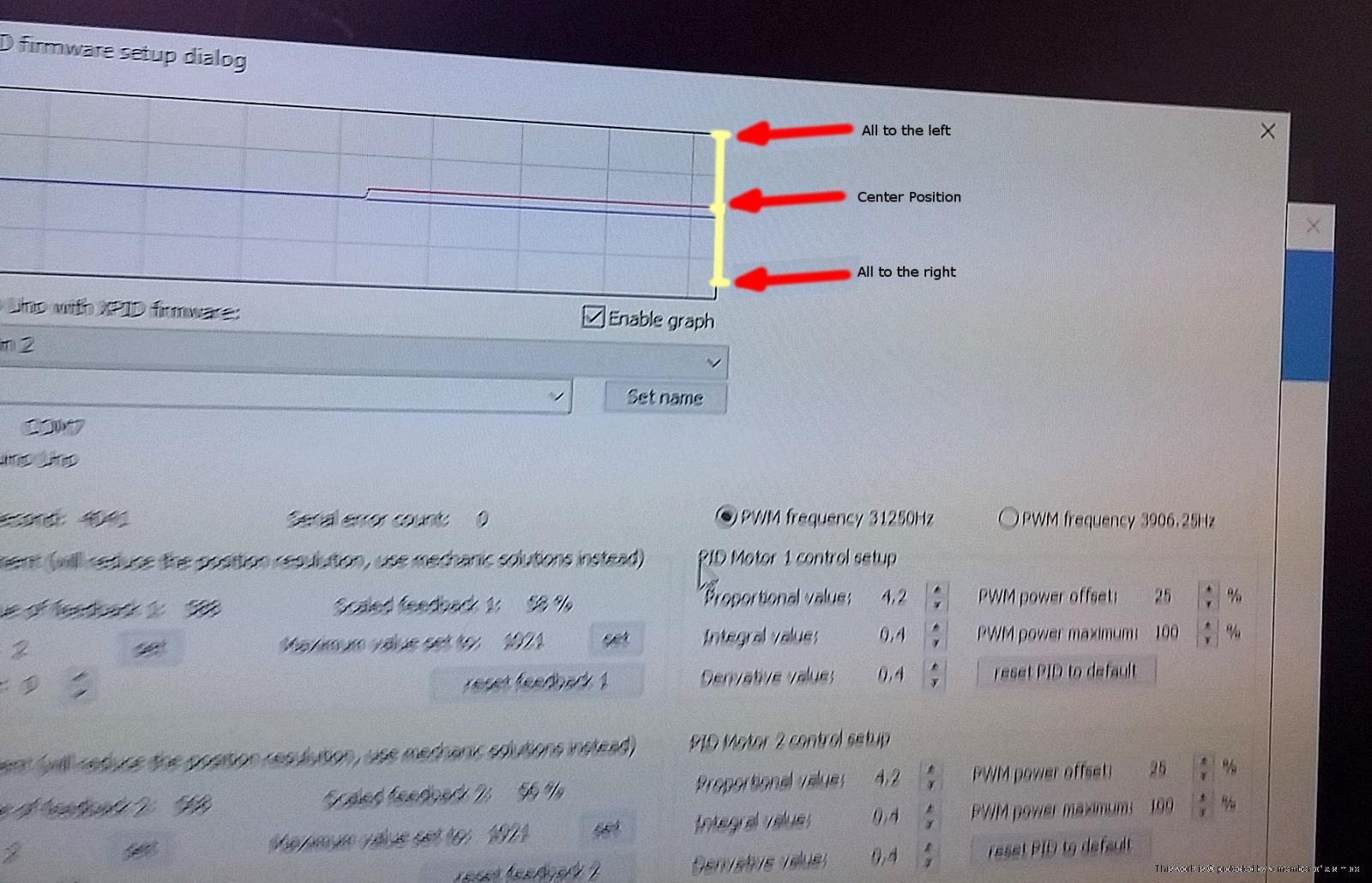 A pot or HALL effect pot has for example 100° movement but you do only use 50° of the 100° movement. Most members do now finetune the limits with the interface software. For example they set in the software, of a 8bit interface, as minimum 100 and as maximum 228. A 8bit DAC has 0 to 255 values, a 10bit DAC has 1024 values and a 12bit DAC has 4096 values which it can distinguishing from each other voltage level of your pot output. This is called the digital "resolution" of the DAC. If you use a 8bit DAC (AMC interface, Vellemann K8055d) you will loose in the above sample of 50° 128 values and the simulator will loose accuracy and smoothness in the movement. It is highly recommended, and a must, to provide your interface DAC 0 to 5 Volt. If you use the software limiter you are doing a nice tryout for the first time but this should not be a end solution. In the end you would have with a 8 bit DAC, and 50% lost of the pot way, around 32 positions, that your controller can accurate reach on one axis (this are i.e. 16 left and 16 right positions on lateral movement axis because it can only control +/- 1 value accurate, there will be always a small noise jitter on the pot output signal or your PID control loop setup is a little bit instable).