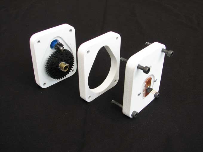 I produced the assemblies on my CNC Router. This produced accurate alignment of the gears. Though there was a little bit of adjustment required to get the gears meshing smoothly (I used some $6 plastic gears). The Hall Effect chip is an A1302. I used salvaged bearing from a printer. Cheap neoidium magnets (ebay)I also re-used the original pots (ebay) for the drive and mounting, so it fitted back on to the motors in exactly the same way as the original pots.