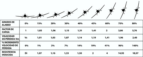 Esta fuerza será mayor a la gravedad y aumentara cuanto mayor sea el viraje. Si por ejemplo tomamos un viraje de 60 grados vamos a experimentar una fuerza equivalente a 2g.