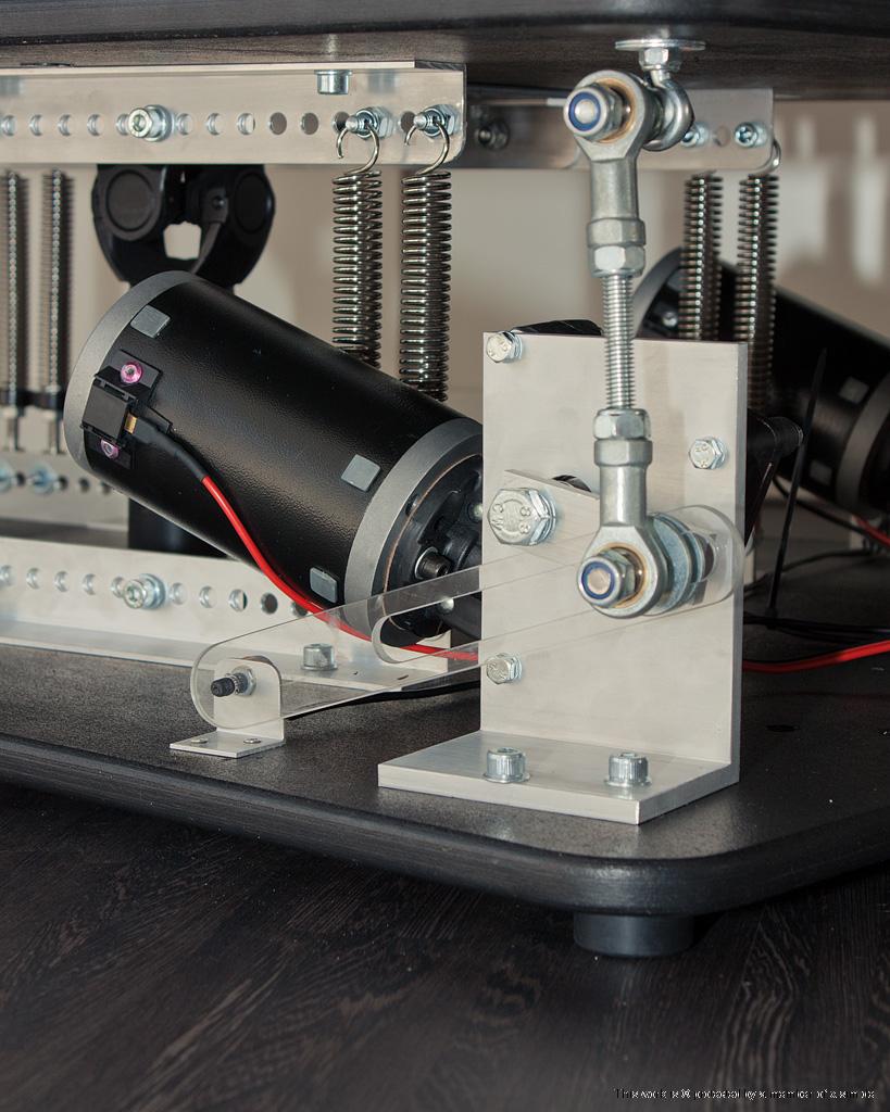 I was afraid the springs would be too strong, but the way they are currently mounted (no spring load/tension when the platform is balanced) and without driver (which eventually brings the center of gravity more towards the rear) the platform slightly tilts forward and only a bit of force has to be applied to tilt it sideways.
